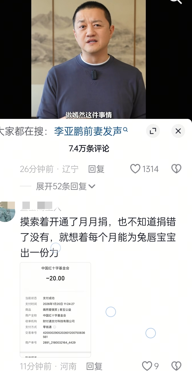 最近,李亚鹏在一次采访中公布了直播捐款情况。前两天直播时,他承诺把捐款全捐给嫣然医院。这次直播共筹得91083.35元,提现时要缴纳个税,他决定自己承担这部分费用,按足额291083.35元捐给儿童医院,还特意备注是替网友捐赠。