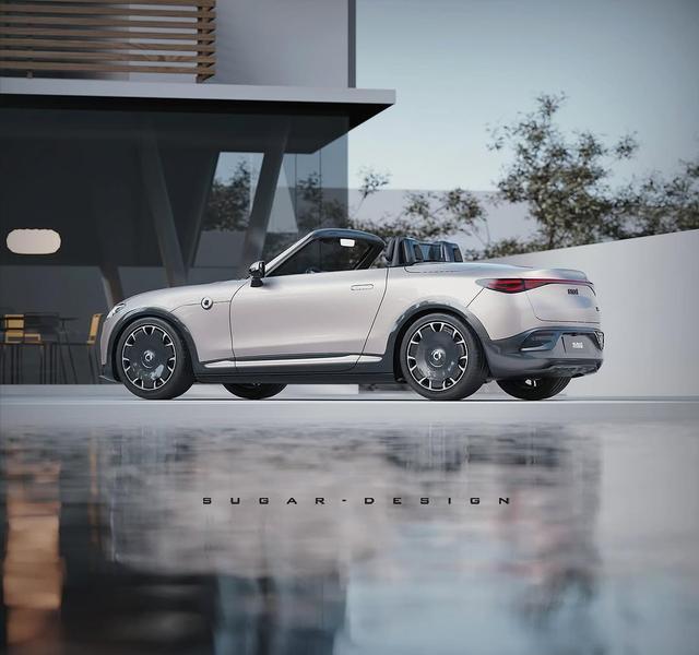 再看看外观方面。虽然官方尚未公布任何设计草图,但是网络上已经疯传了不少渲染图。从这些假想图来看,全新的Smart Roadster似乎融合了现代梅赛德斯EQ车型的设计风格。前脸部分,它更具未来感。那种未来感体现在哪里呢?可能是线条的运用更加犀利,大灯的造型更加独特新颖。就像我们看到的很多现代电动汽车一样,它们的前脸往往有着独特的封闭式格栅设计,Smart Roadster可能也会在这方面有所创新,用一种全新的方式来展现自己的前脸特色。而车尾部分则保留了一定的经典Roadster轮廓。这一点非常难得,因为它保留了Smart Roadster的灵魂元素。经典的车尾线条,独特的车尾造型,让人一眼就能认出这是Smart Roadster。而且,软顶敞篷依旧是这款小跑车的标志性元素。想象一下,在阳光明媚的日子里,开着这样一辆软顶敞篷车,行驶在风景优美的公路上,那是一种多么惬意的享受啊。整辆车都散发着小巧可爱的元素,这种小巧可爱并不是简单的幼稚,而是一种精致、灵动的感觉。