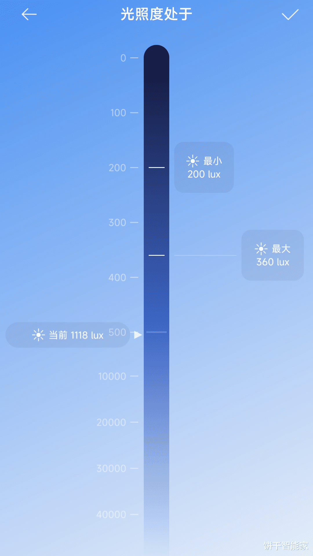 另外光感的这个自动化条件,也很细节,以前我们设置自动化的时候状态条件一般都是高于某某值,或者低于某某值,而子擎solo直接给你选择最高多少值,最低多少值,可以一次性做好处于多少到多少这个范围的值了。同时你设置的时候,左边这个图形化是显示实时光照,你比较有参考值,不用去估算了,其实这个估算是整体外界参考的,但是实际我们安装的位置不一定是在外界参考绝对值的。所以每次调试光照的时候脑子里都要自己给他做个动态补偿,子擎目前的这个机制就比较直观了,降低了不少安装难度,当然如果你是一个轻微强迫症,习惯把值弄成整数,你可以直接点击他进行文字的输入,再也不会看着不整数的值难受了。