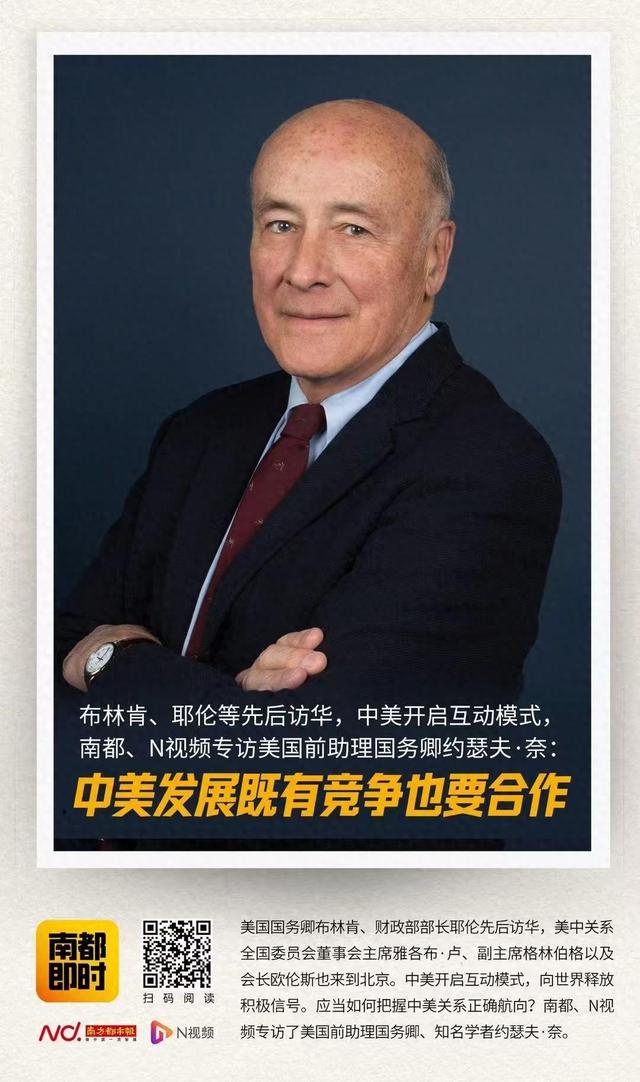 2023年6月18日至19日,时任美国国务卿布林肯访华。南都记者当时专访了约瑟夫·奈。在他看来,布林肯访华,为中美沟通迈出有益的一步。他认为,高层交流非常重要,民间交往对两国深化了解的作用同样不可忽视。“科学交流、商业互动、学生出国留学都是很好的例子。”