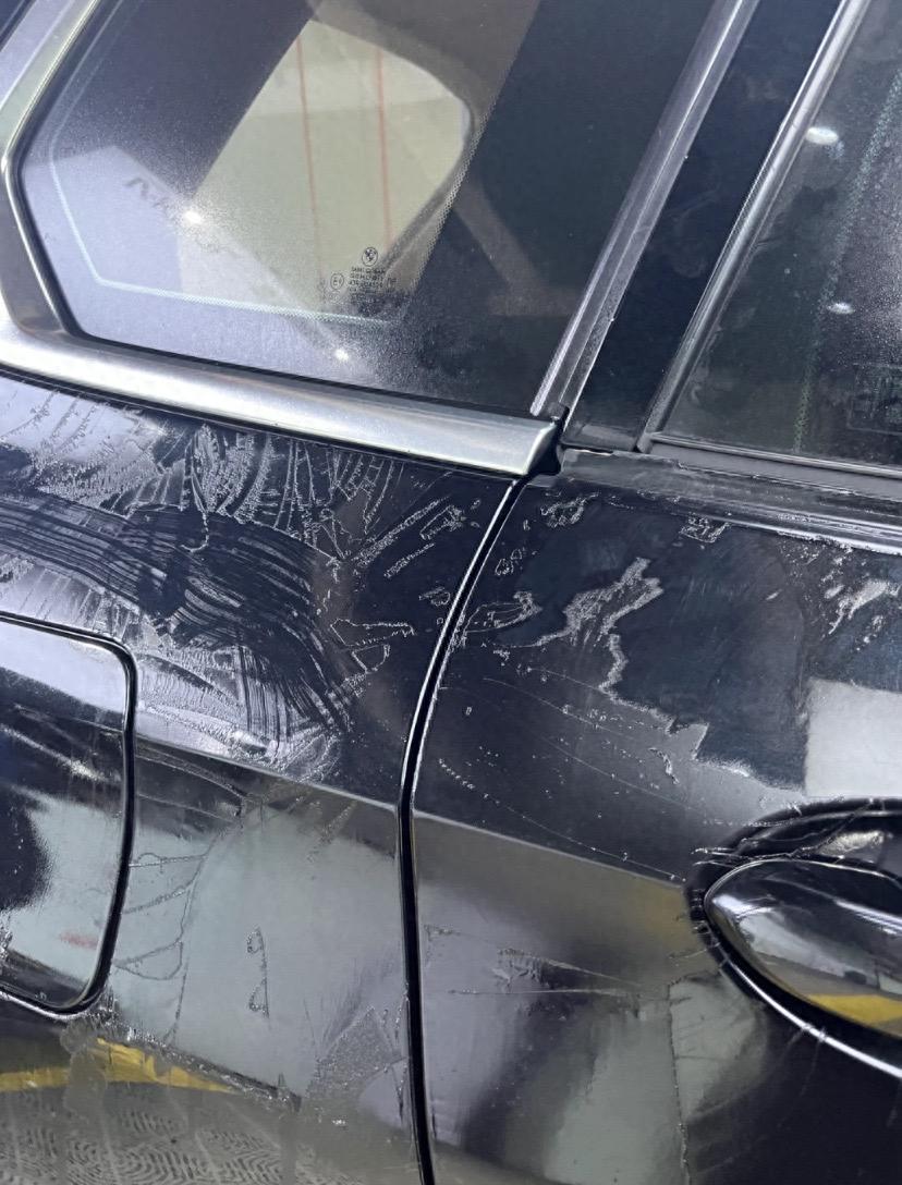 三、除残胶,用对溶剂和布即便手法再稳,边缘或接缝处还是可能有零星残胶。这时候千万不能用指甲抠、塑料铲刀刮 —— 一次就可能刮掉 2–3μm 的清漆,连抛光都救不回来。正确的工具是车衣专用除胶剂和超细纤维布(不掉毛、不留划痕)。操作时,把溶剂喷在布上,而不是直接喷在车漆上,防止液体流到缝隙里。以打圈的方式轻擦 5~10 秒,残胶会慢慢化成黏糊状,再用布面干净的区域继续擦。遇到顽固的小点,可以用蘸了除胶剂的湿布覆盖 2 分钟 “闷” 一下,再轻轻一擦就掉。擦完之后,用干净的布再抹一遍,防止溶剂残留。整个过程不用费蛮力,车漆的触感依旧光滑。