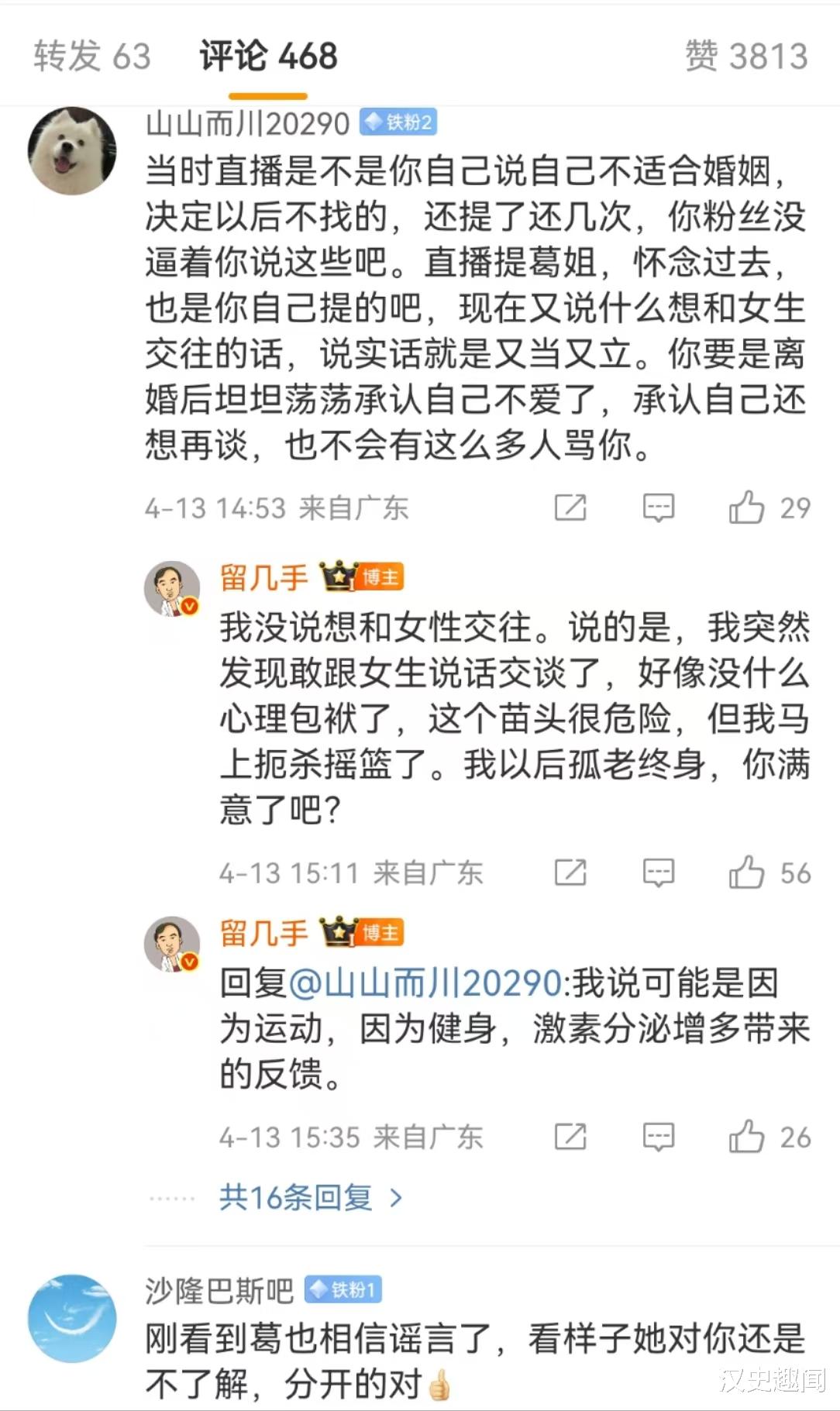 留几首竟然不排斥女性了,这让粉丝很不理解。他怎么能不排斥女性呢?了解他和葛夕离婚的网友,都知道他不行的。