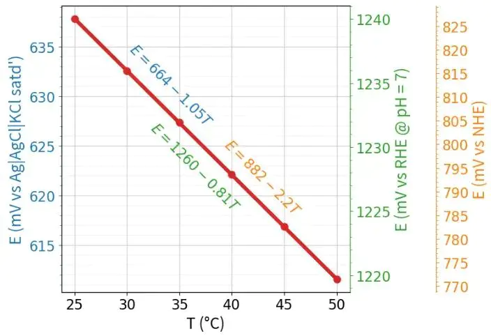 电化学测量方法通过和不同离子强度下的电势插值法,测得OER标准电势为1.229 V vs. SHE;方式二:使用(redox cell)结合金电极或汞电极,在标准条件下直接验证该值。