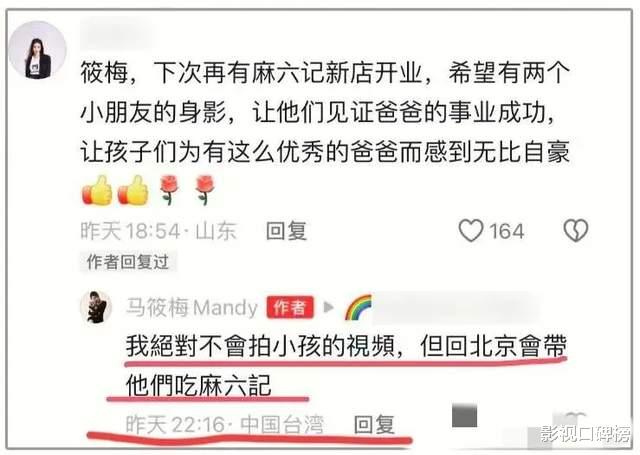 有网友留言:下次新店开业,希望有两个小朋友的身影。马筱梅说:我绝对不会拍小孩的视频,但回北京会带他们吃麻六记。她立场坚定,有原则,有底线。这位后妈将不是亲生的小孩保护到位,避免小玥儿,小箖箖受到外界不必要的干扰。事实上,亲妈大S生前很反对一对儿女曝光在大众眼前,亲爸爸在直播间叫一对儿女的名字都要告上法庭。可见,马筱梅作为后妈也是比较谨慎的。