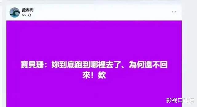 黄春梅(S妈)4月1日深夜再次发文,她写道:宝贝珊,你到底跑到哪里去了、为何还不回来!欸。白发人送黑发人,心情真得很难受。