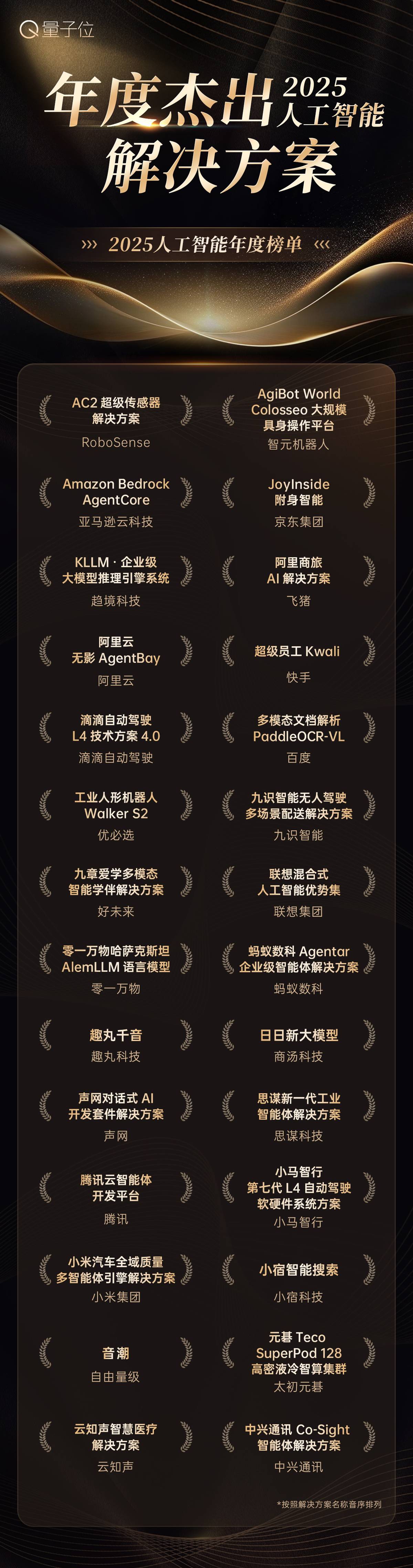 2025人工智能年度杰出解决方案榜单涵盖了各个领域内的多个方向,把前沿算法装进成熟产品形态,扎进真实业务流程。