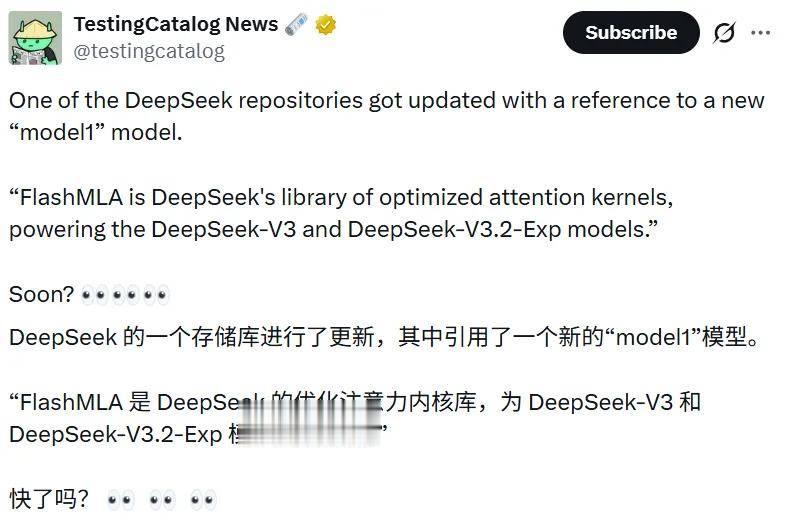 这些天,DeepSeek 给其 FlashMLA 代码库推送了不少更新,而在这些更新中,一个名为 Model1 的模型引起了广大网友的注意。