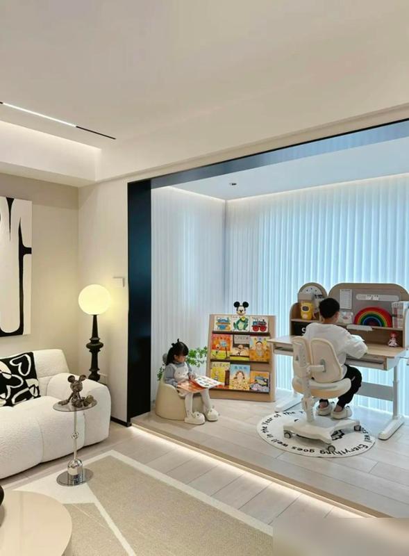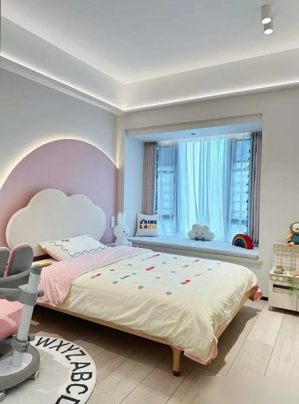 男孩房衣柜预留半米成长空间,书桌高度可调节;女孩房云朵床配圆弧墙,童趣却不幼稚。