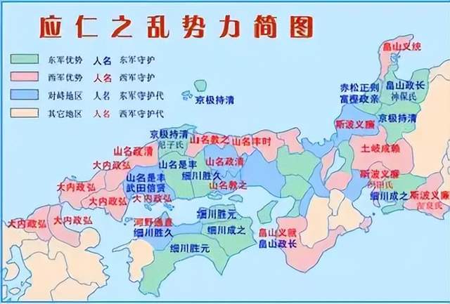 于是细川胜元开始找帮手,山名持丰也不遑多让,其中他们在畠山家和斯波家选择的代理人,纷纷表态支持扶持自己的人;而其他大名也选边站队,支持和自己更亲近的那一个。就这样整个日本分为了旗鼓相当的两派,箭在弦上只差一个契机便会立刻发射