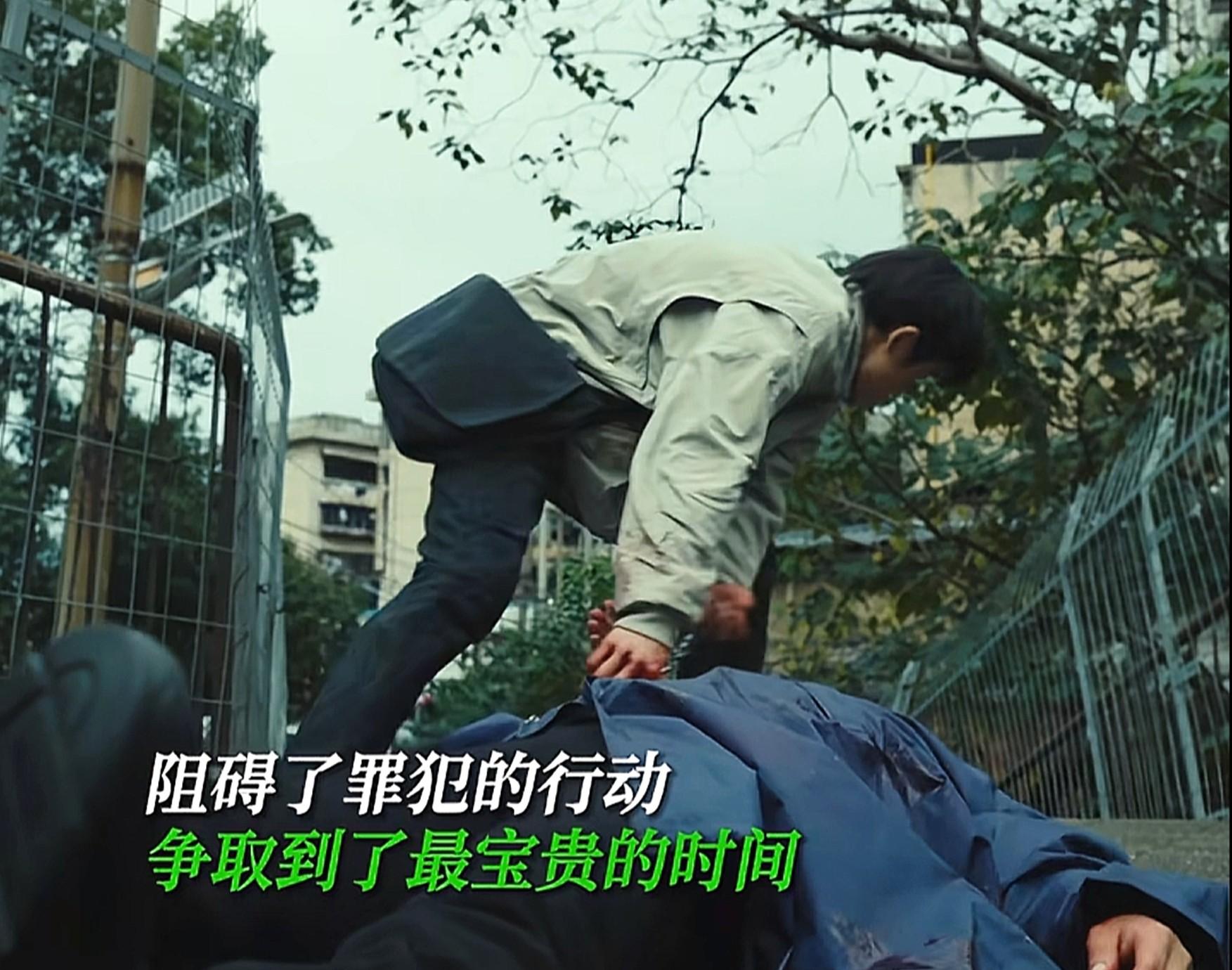 他强忍剧痛,死死抓住四眼,阻止其逃跑,直至队友赶到。