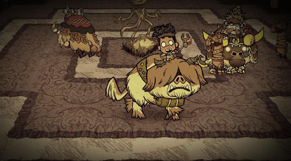 核心玩法:在随机生成的荒野中收集资源、建造庇护所,抵御季节变化与怪物侵袭,支持多人合作。