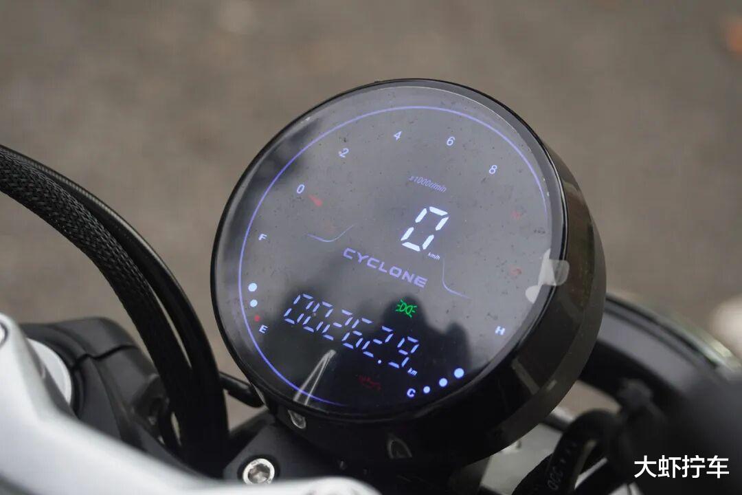 虽然看上去有点像,但这块LED彩色液晶仪表并不是赛科龙此前复古巡航车RA2上的那块,表盘布局为朋克190进行了重新设计,外圈使用模拟指针的形式显示转速并带有水温显示功能。
