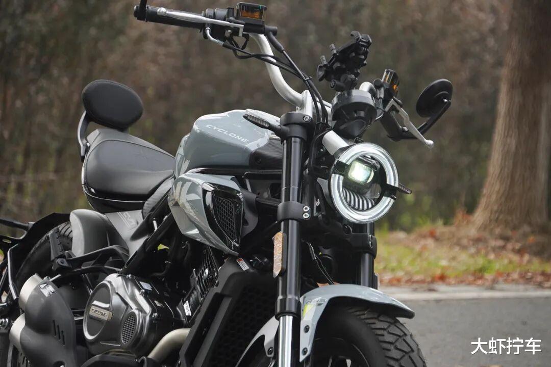 头灯部分,朋克190使用了带有赛科龙家族设计的镂空式外圈日行灯+内部LED透镜发光单元的结构,在带有一定的科技感前提下又呼应了巡航车经典的圆形头灯元素,实际的铺光效果也能让人满意。