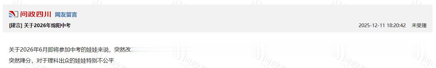 一石激起千层浪,该公告一经发布,立刻引发很多绵阳家长的质疑和不满,纷纷到本地论坛以及问政平台上发帖,反对这个中考改革方案。