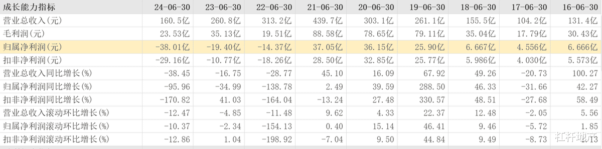 最新披露的半年报显示,2024上半年,金科营收、净利润降幅均扩大。其中营收同比下滑38.45%为160.5亿元;归属净利润-38.01亿元同比下滑95.96%。这已经是金科连续第三个半年亏损,2022、2023年上半年亏损分别为18.26亿元、19.77亿元。