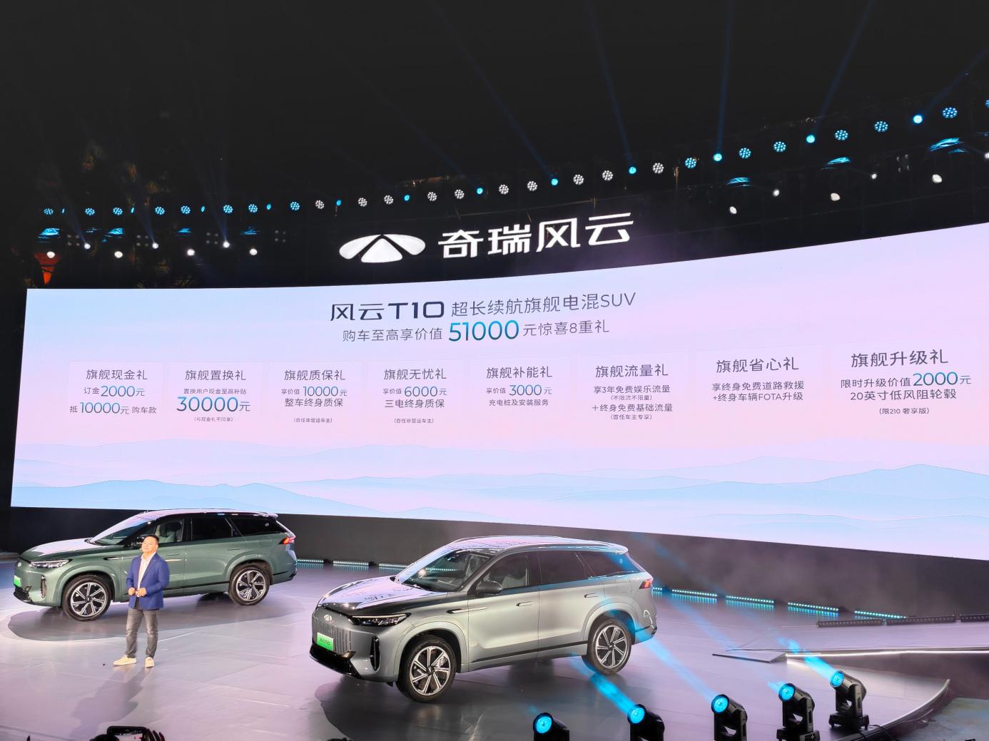7月25日,奇瑞风云T10正式上市,新车定位中大型SUV,采用了插电混动的动力形式,共推出了3款车型,售价为18.99-22.99万元。在9月30日前,购车还能享受到至高价值51000元的八项优惠权益。