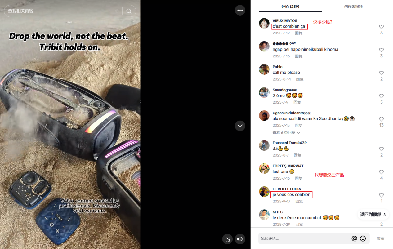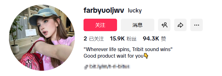 例如,拥有1.59万粉丝的@farbyuoljwv,就是Tribit长期合作的TikTok达人之一。