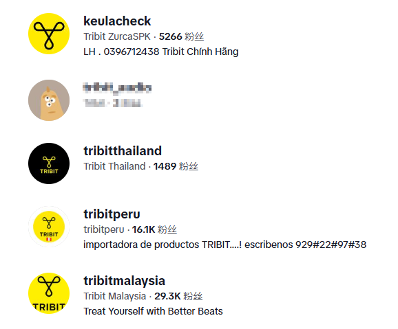 除了与达人进行合作外,Tribit品牌为了更精准地触达不同国家的用户,还在TikTok上搭建了完善的账号矩阵,为马来西亚、泰国等重点市场分别建立了本土化账号。