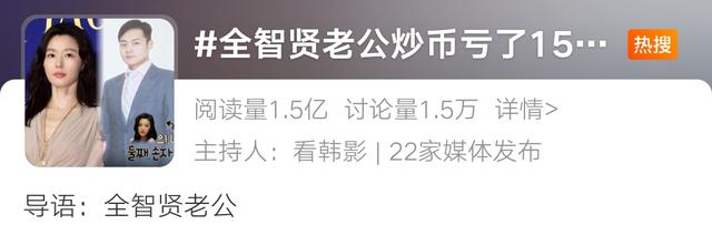 网友纷纷猜测:“难道女神家里缺钱了?”很快韩媒就爆出猛料,全智贤的老公崔俊赫因炒虚拟货币,狂亏150亿韩元(约8000万人民币)!一时间,相关话题也冲上热搜,有人调侃:韩国版刘涛,会赚钱的老婆败家的老公。
