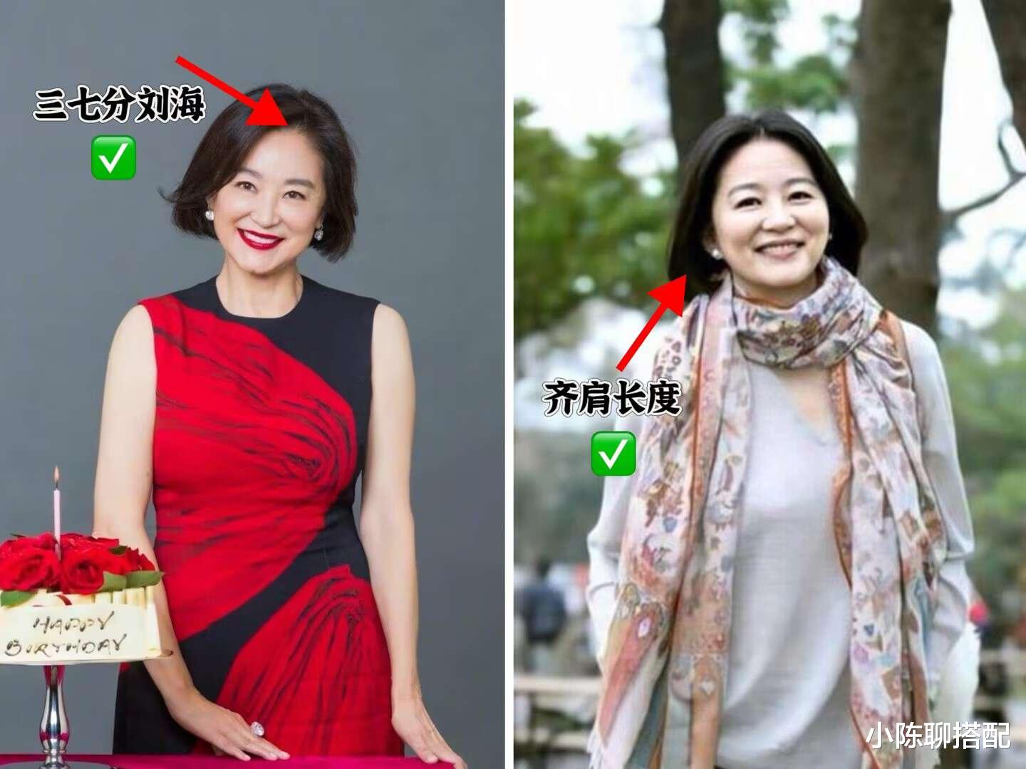 而相比于这3款出错率高又显老气的发型,林青霞的这两款经典发型就很不错,遮住缺陷的同时,又能大大方方的展现出成熟女人的优雅气质。