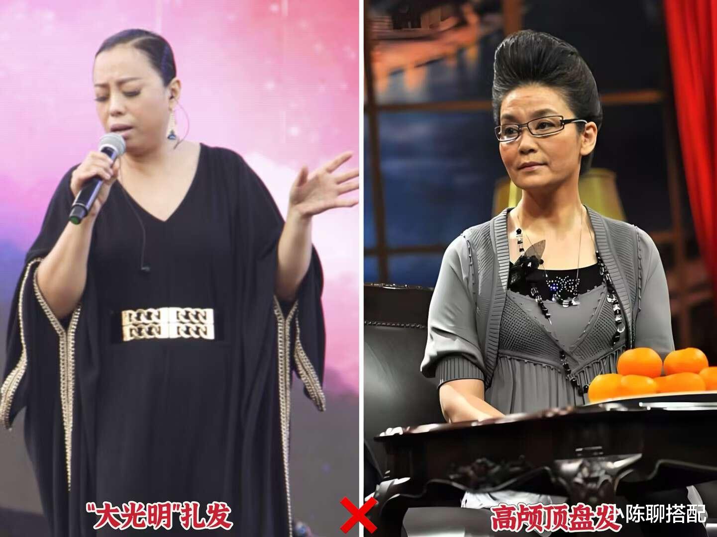 第三款,高颅顶盘发,很多人为了让自己看起来更为气质干练会选择盘发,但总喜欢将颅顶高高的梳到头顶,这样是有了高颅顶,但随之而来,更考验我们的穿搭了,稍有不慎就会有一种“油腻感”,得不偿失。