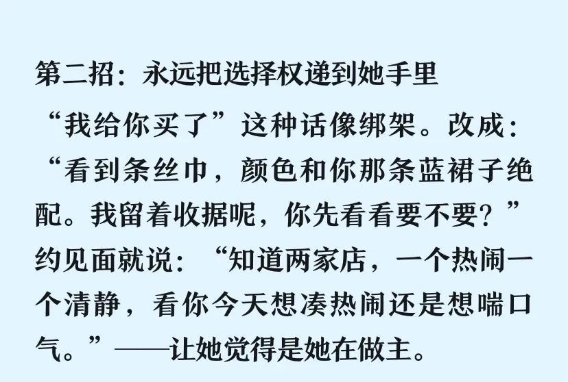 你问怎么贴合,简单说,少打扰,但不失联,少承诺,但不失信,少套路,但不失趣,细节上心,关键时刻顶上