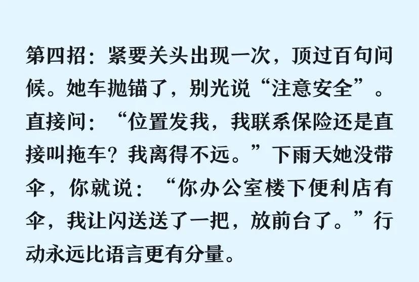 你天天发消息,像鞭炮炸街,热闹三秒,后劲为零,她要的是能落地的东西,能扛事的肩膀,能按时出现的身影