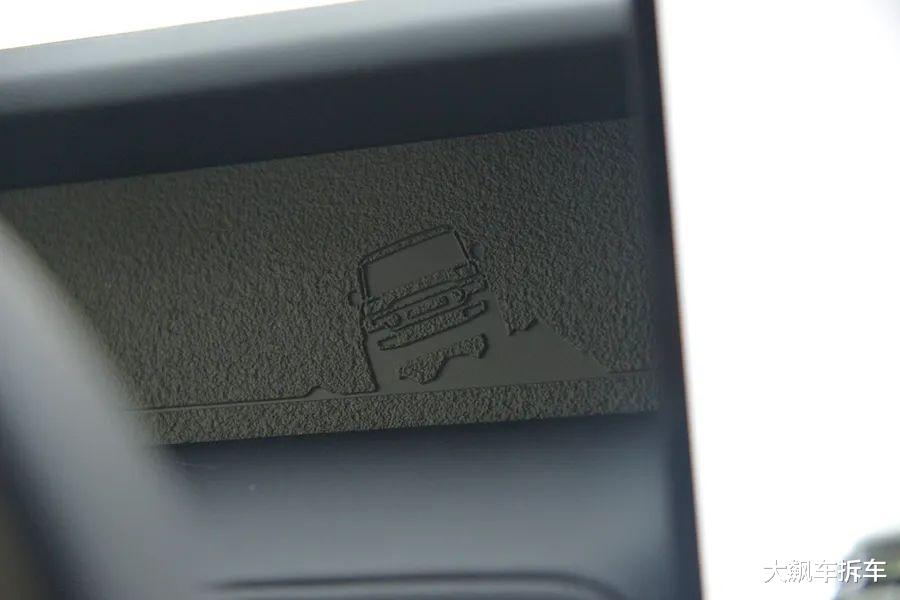 前方没有仪表盘,左侧是大灯高低调节旋钮,右侧有一个越野车的图案。