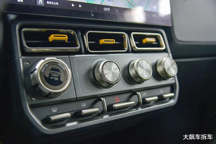空调出风口的黄色拨杆,为这辆车增添了不少生气。
