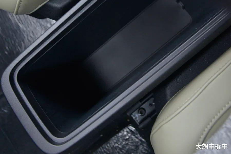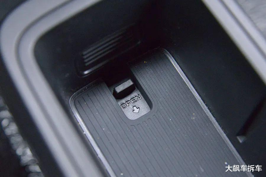 扶手箱是一个百变储物格,不仅水杯架隔断可以任意摆放,而且还能通过解锁卡扣将第一层储物盒拿起,露出下层储物空间。这对于有“藏匿”需求的朋友,是一个不错的位置。
