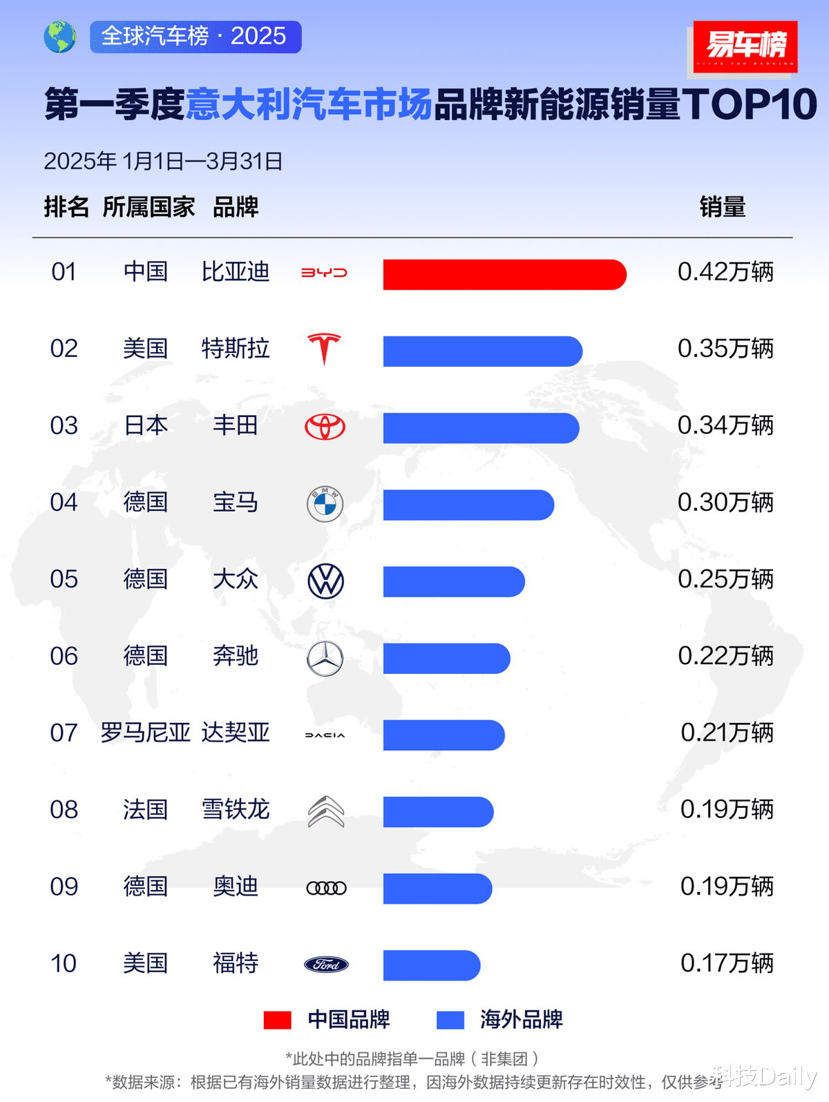 同时比亚迪也持续打开了意大利市场,一季度就卖了0.42万辆,并且在四月份高端品牌腾势也在米兰设计周期间官宣进入欧洲,未来也将会持续大卖。