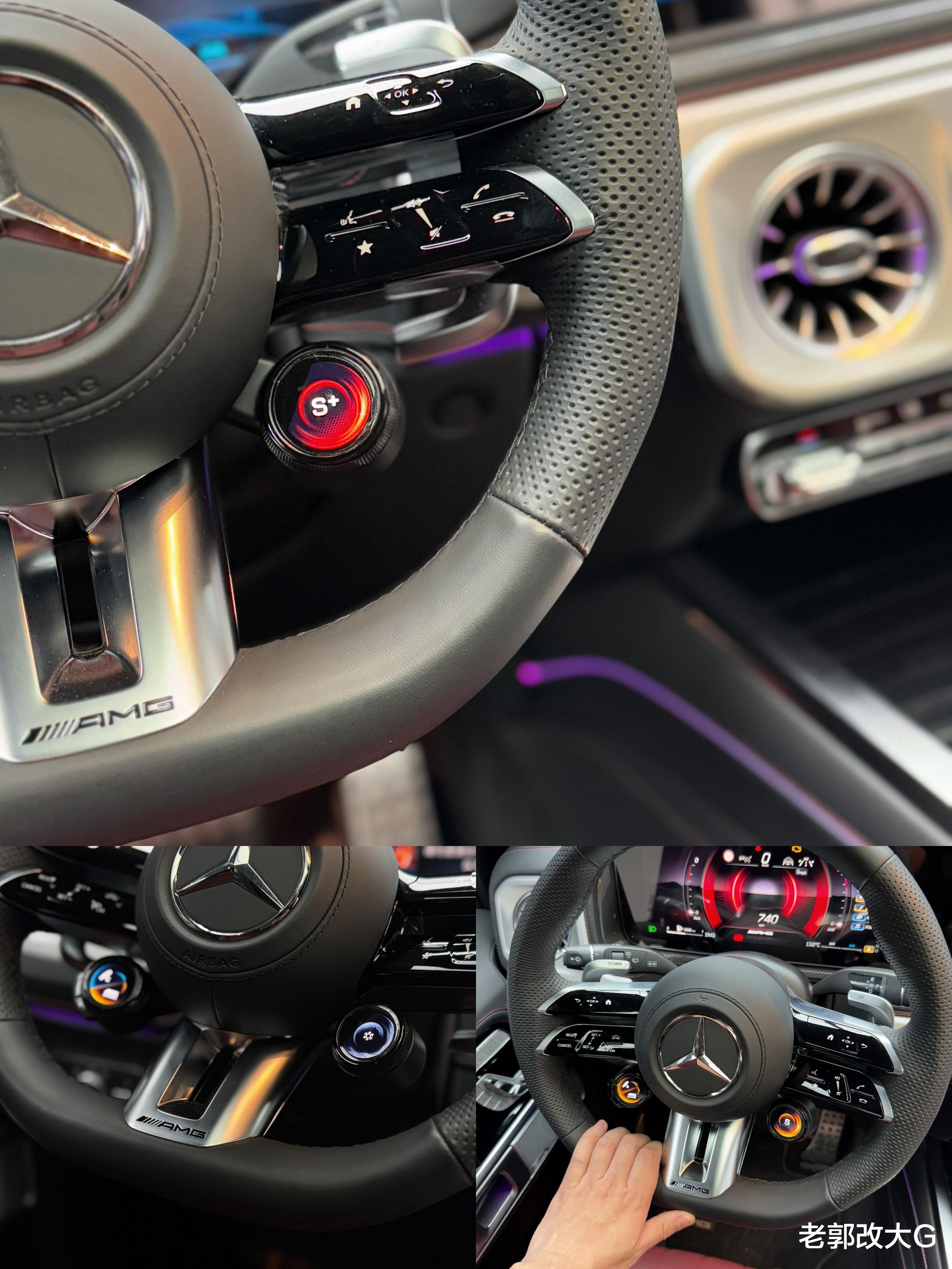 内饰方面,改装团队为这台G500更换了真皮蜻蜓方向盘,不仅提升了握感,还增加了内饰的运动气息。
