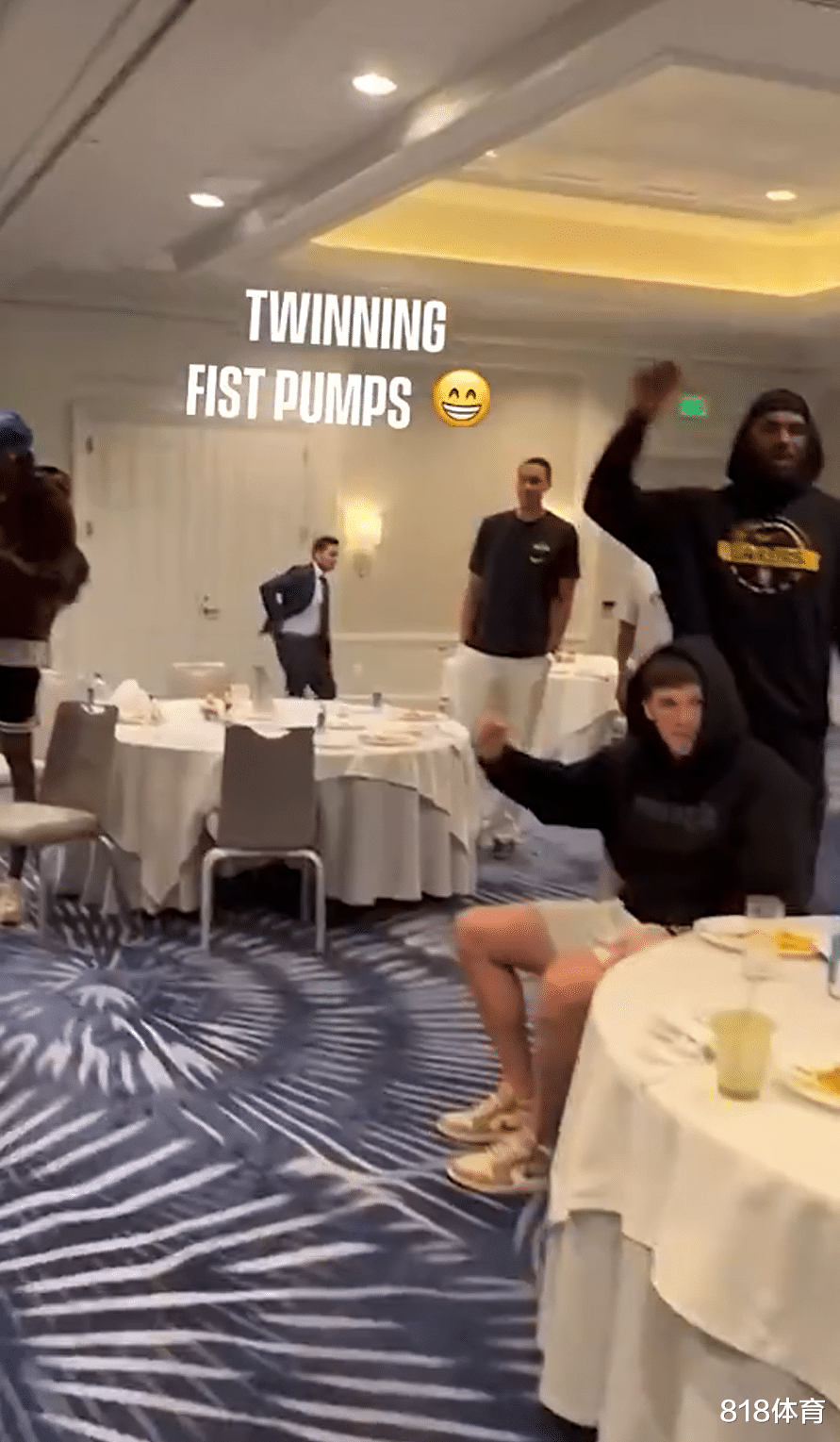 海斯和范德比尔特站在东契奇一旁,像两大护法一般,拉拉东契奇的帽子,拍拍他的肩膀,欺负人!