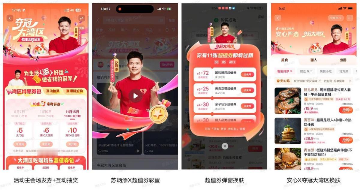 全运经济的红利也惠及了广大中小商户。从知名餐饮品牌到本地特色小吃店,纷纷通过线上渠道吸引客流。广深两地中小商家商品交易额同比增长81.3%,多家本地特色店铺成为线上攻略的热门打卡地。与此同时,抖音生活服务等平台发起“夺冠大湾区”等专项活动,携手体育明星与媒体资源,通过探店直播、主题营销等方式,精准链接供需两端,进一步放大了“赛事+”的经济效应。