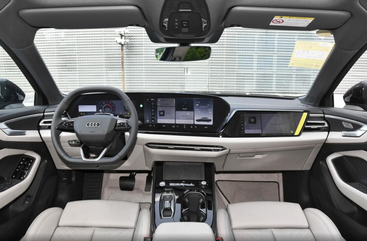 内饰方面,一汽奥迪A5L采用品牌最新的设计语言,即便是优惠后23.98万的入门版,也给你标配了10.9英寸的副驾娱乐屏。不仅如此,仪表盘和中控屏还采用了悬浮式双联屏的布局,其中仪表盘的尺寸为11.9英寸,中控屏为14.5英寸。另外,全新样式的方向盘也同样更显档次感和科技感,并且入门即配备运动套件,所以真皮打孔的处理,以及双平底式的设计,这些都能提升车内的运动氛围。与此同时,从实拍图中也可以看到,新车也提供了时下比较流行的浅色系内饰,“珠母米”的内饰配色也会让整个座舱显得更高级。