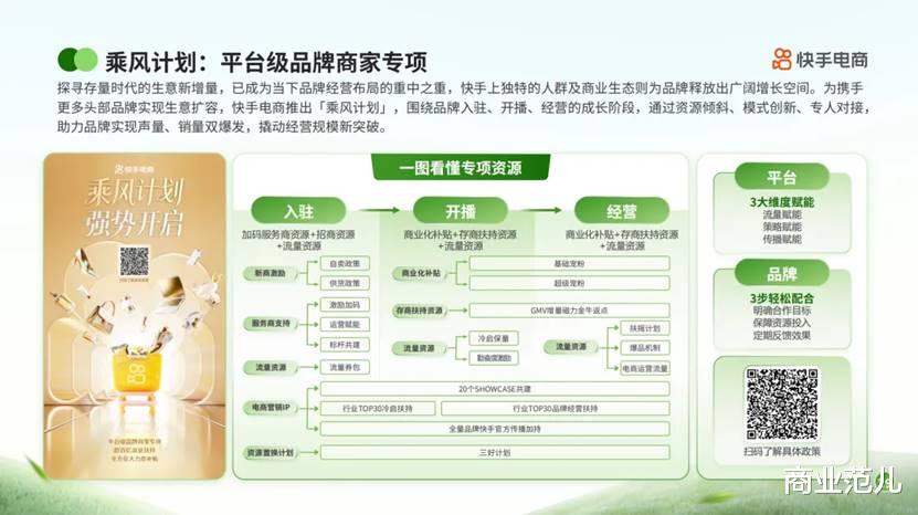 政策端,快手电商面向头部品牌推出“乘风计划”,围绕品牌入驻、开播、经营的成长阶段,通过资源倾斜、模式创新、专人对接,助力品牌实现声量、销量双爆发,撬动经营规模新突破。