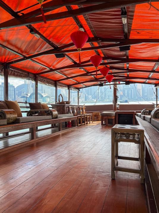 Aqualuna由香港本地一位86岁的造船工匠倾注心血,采用传统物料精心打造而成。这不仅是香港最后一艘人手制造的中式帆船,更是对昔日著名海盗张保仔的致敬。船体设计独特,设有两层木甲板,提供宽敞的室内及露天空间,总面积达1,500至2,000平方呎。船上配备周全的酒吧及鸡尾酒设施,为游客打造了一个别具一格的社交场所,可举办多达80人的私人鸡尾酒会及晚宴。