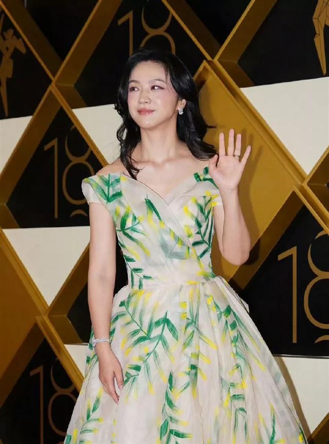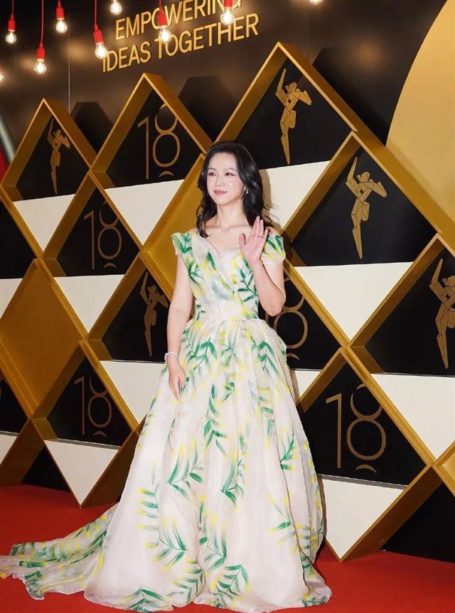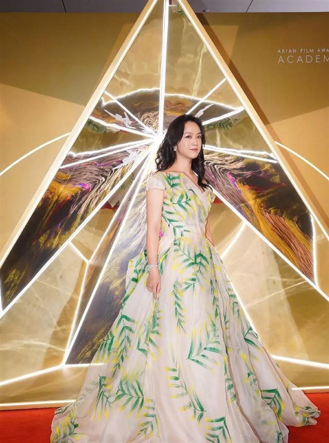 汤唯又一次站在了亚洲电影大奖的红毯上,这一次,她选择了一条绿色印花长裙,仿佛把整个春天都穿在了身上。
