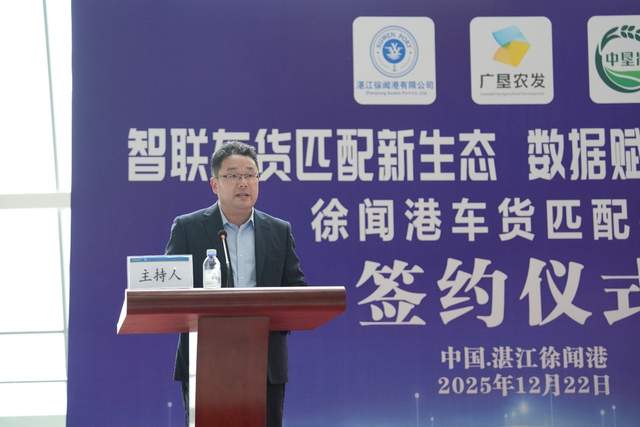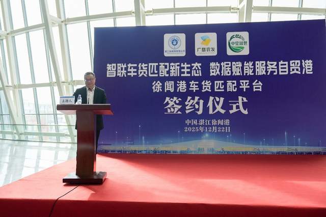 本报讯,2025年12月22日,湛江徐闻港有限公司与中垦晟世(佛山)科技有限公司“车货匹配平台”签约仪式隆重举行。仪式上,合作双方核心领导——徐闻港董事长张金虹、广垦农发集团董事长蔡杰、中垦晟世总经理谭凌分别发表重要讲话,深刻阐述了此次合作的战略意义、实施路径与未来愿景,共同为项目擘画了清晰蓝图,标志着粤琼物流大通道的数字化升级进入实质性共建阶段。