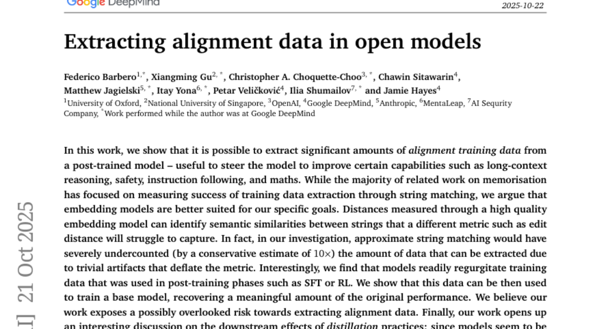研究团队发现了一个令人震惊的现象:那些被认为是AI模型最宝贵资产的"对齐训练数据"——包括安全指令、数学推理、长文本理解等高价值训练内容,竟然可以被相对简单的方法从模型中提取出来。更让人意外的是,传统的衡量方法严重低估了这种数据泄露的规模,实际泄露量可能比之前认为的多出10倍以上。