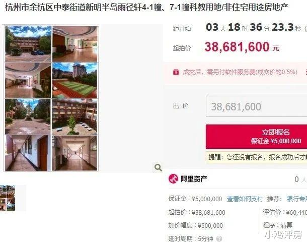 破产清算!位于杭州市余杭区中泰街道新明半岛的两处学校楼栋上架拍卖。