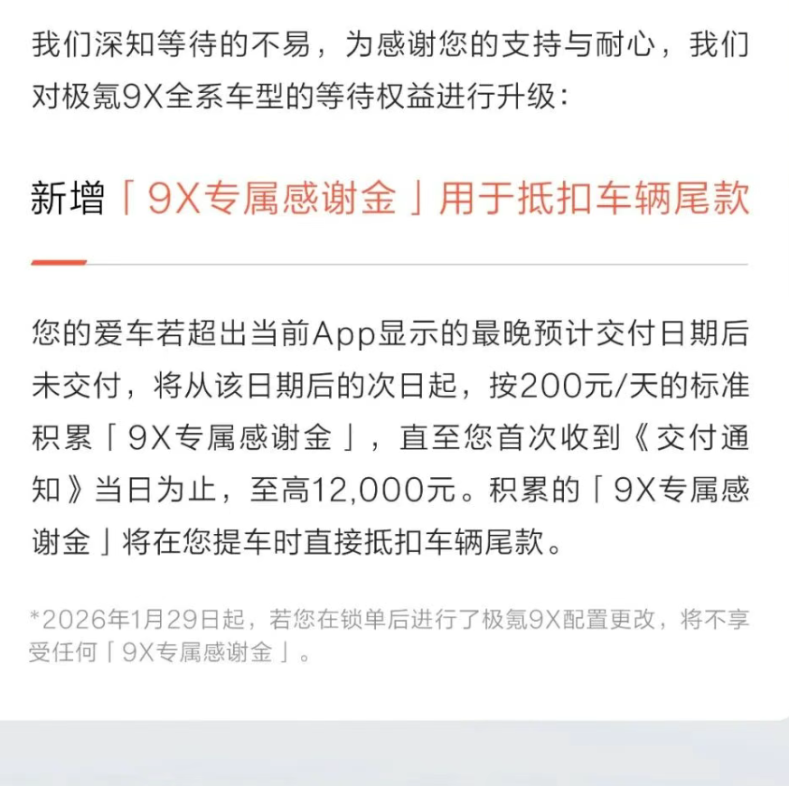 准车主基本都知道了吧,极氪9X交付延迟这下有“补偿”了