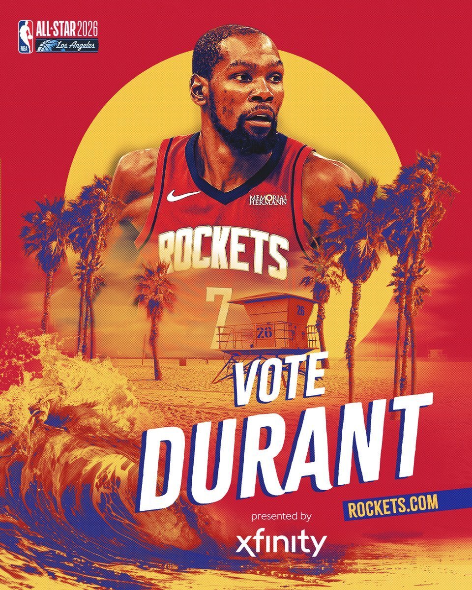 火箭队官方更新动态,晒出一张杜兰特的海报,并且写道:“让我们让它发生——杜兰特生涯第16个全明星赛!你们知道该怎么做!”截止到目前为止,杜兰特生涯已15次入选全明星,其中一次当选为全明星MVP!