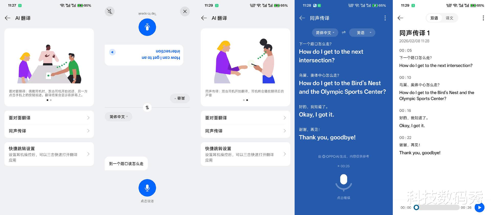 而且OPPO Enco Air5 Pro这次居然还加入了AI翻译功能这你受得了吗?在耳机设置页面里就可以直接开启面对面翻译,也就是把手机分屏成两块屏幕,你和对面的人同时可以看到翻译的内容,另外还可以开启同声传译,边说话你的耳机里就边翻译成想要的语言比如英文了,而且耳机里是自动播报的翻译后的英文,相当6。