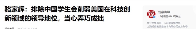 观察者网2025-03-19——骆家辉:排除中国学生会削弱美国在科技创新领域的领导地位,当心弄巧成拙