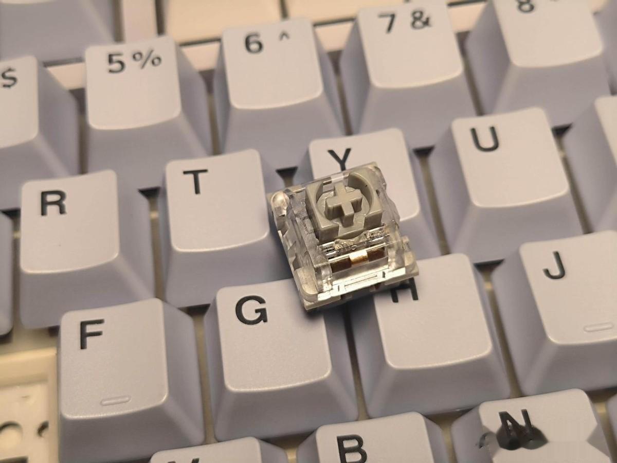 轴体轴体我感觉是这次雷柏V700DIY产生质变的关键点,它搭载的是凯华定制的快银轴,属于线性轴体,直上直下,手感清脆,配合不容易打油的PBT键帽,整体按键声音属于经典的麻将音,很舒服;此外,快银轴属于极速触发的轴体,所以也非常适合玩FPS类的游戏。