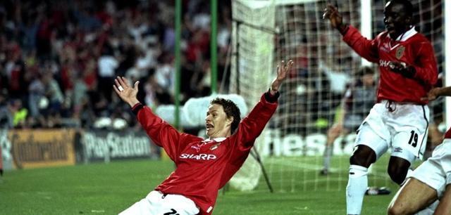 眼看胜利即将属于慕尼黑,曼联却在最后时刻上演逆转:补时阶段,泰迪·谢林汉姆接瑞恩·吉格斯的射门补射破门,随后奥莱·索尔斯克亚在几秒后完成绝杀——2:1,“红魔”上演奇迹夺冠。