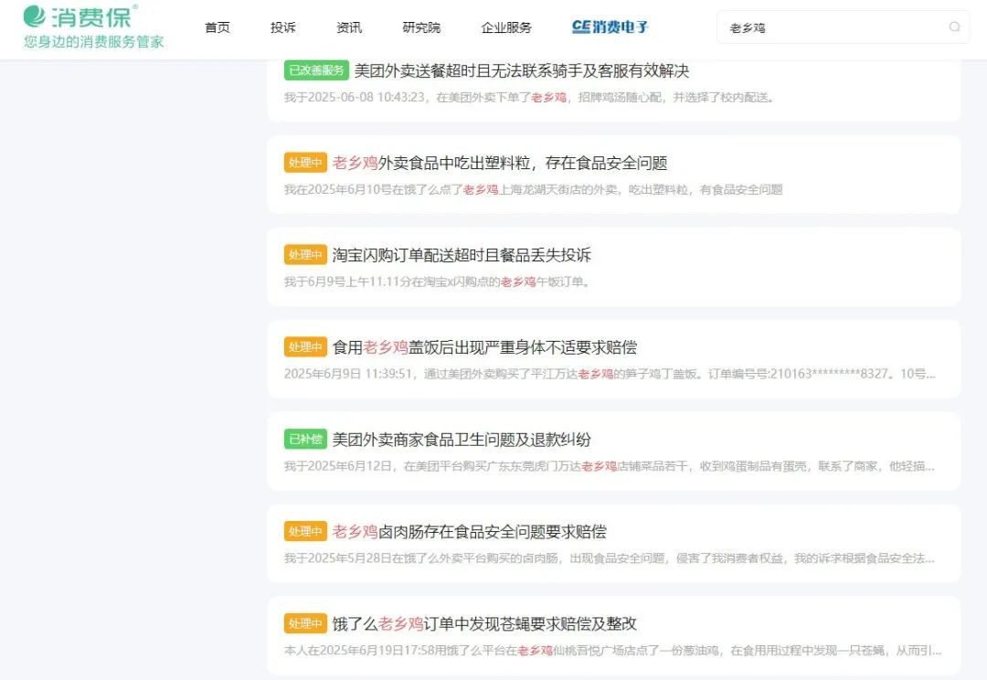 然而另一边,在社交媒体平台及消费保等投诉平台上,却也充斥着不少消费者对老乡鸡的“吐槽”。消费保数据显示,与老乡鸡相关的投诉达100件。