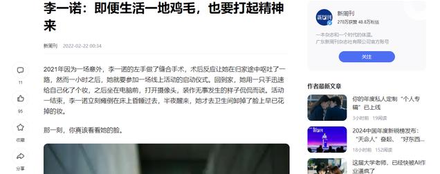 新周刊,2022-02-22,“李一诺:即便生活一地鸡毛,也要打起精神来”.