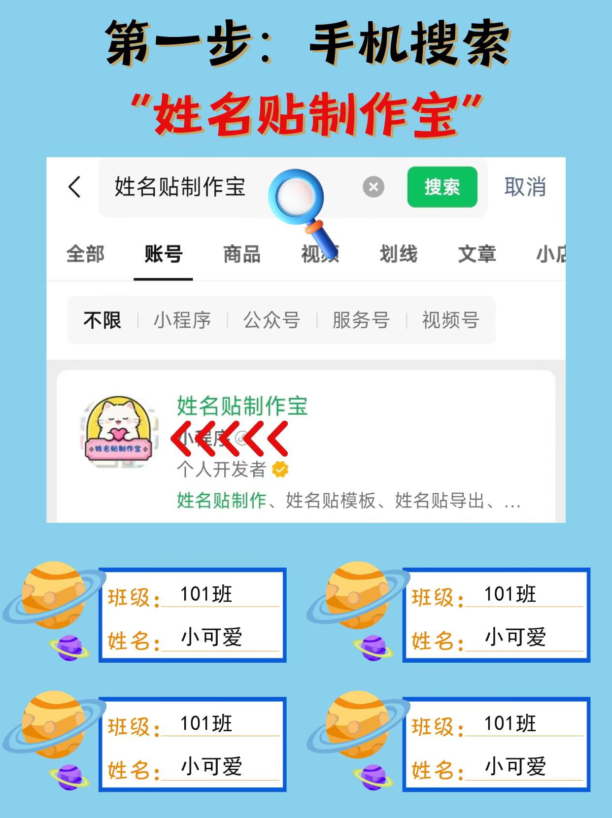 🐾 方法二:立体姓名牌(教室座位/书包挂件)